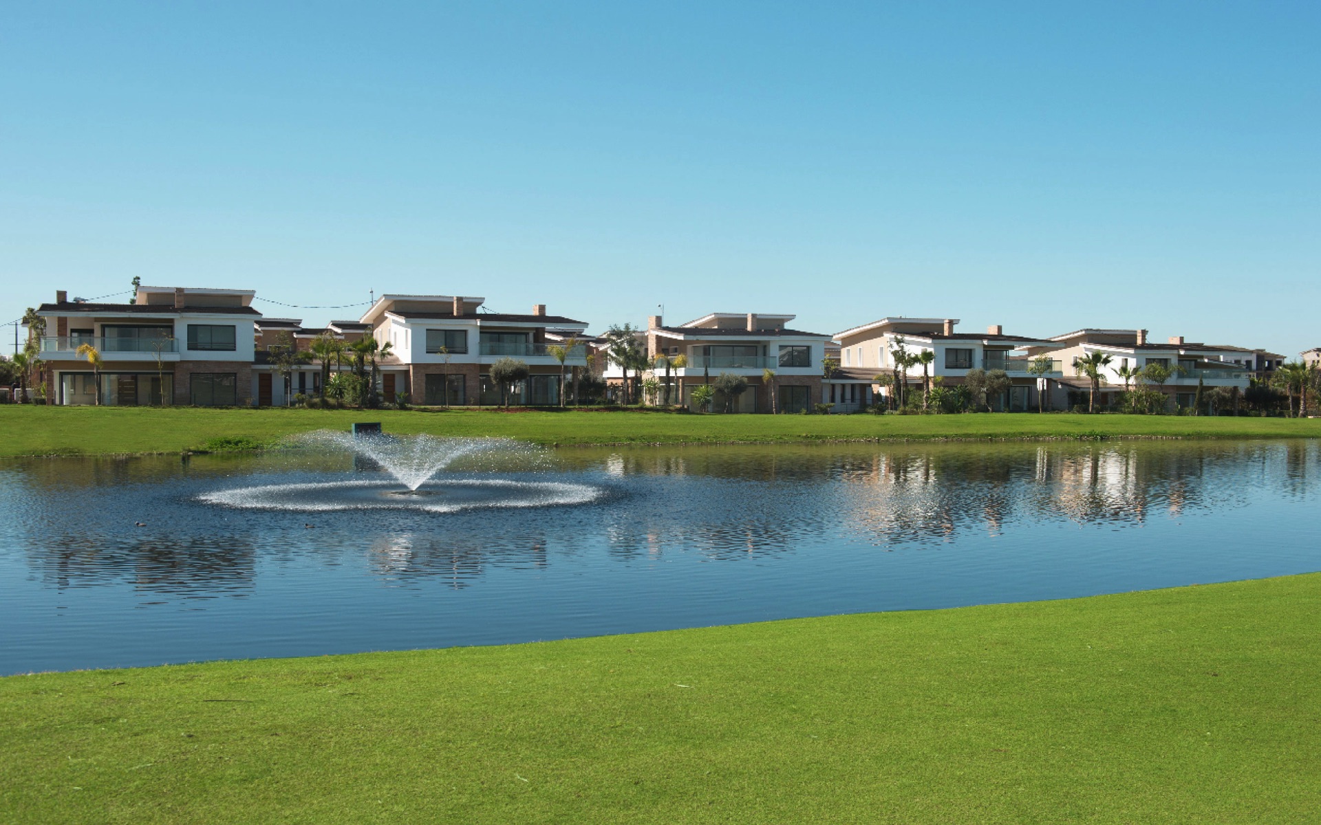 Ce projet d’envergure internationale comprend le développement d’un complexe immobilier haut standing sur 120 hectares, intégrant villas et immeubles résidentiels. L’opération a nécessité une approche coordonnée entre urbanisme, architecture et ingénierie.